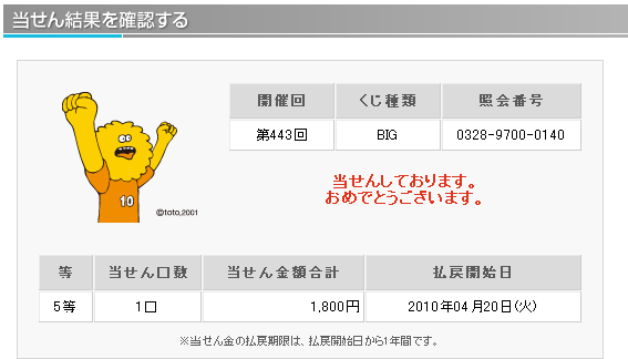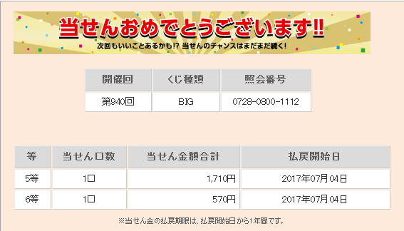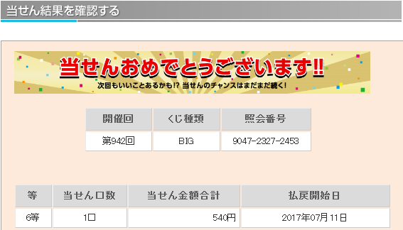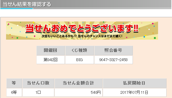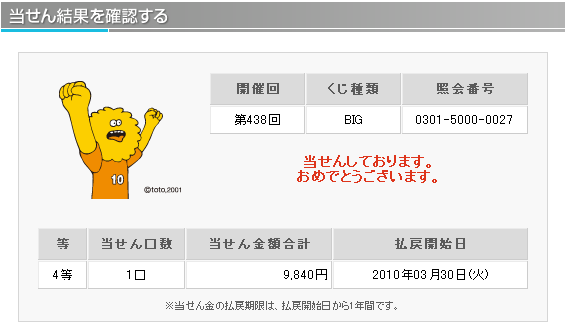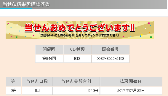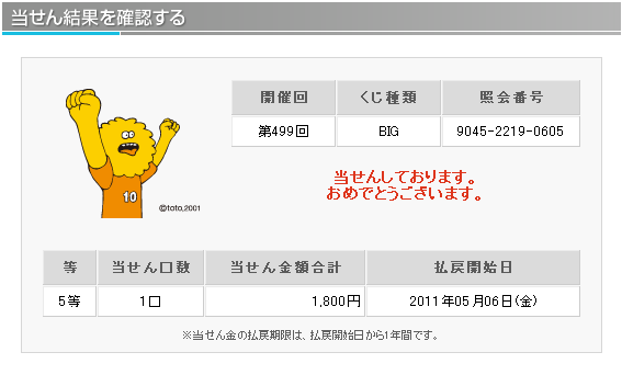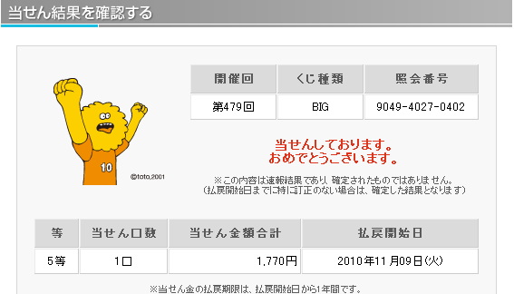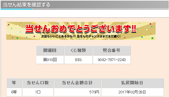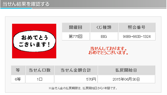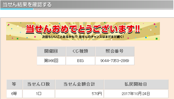 理論値における5等の当選率は1/ 299、6等の当選率は1/ 75と公開されています。 仮設ではありますが、主催者側の1等当選の出現コントロールが勝率の高いチームの勝ちをより多く販売口数に入れることによるものだとすれば 末等にも勝率の高いチームの勝ちが多く入っていると考えられます。末等を狙うことによりラッキーパンチ的に1等が当選するのではと考えます。 末等当選には購入曜日毎の偏りや午前、午後の購入タイミングによる偏りがあることが分かってきました。 この末等の当選偏りを明確に分析し、当選媒体の傾向や1等未当選の傾向と組み合わせることにより1等当選を狙います。 『totoBIG当選研究会。』では現在、購入時間別、購入口数別を含め多角的に末等の当選統計を集計中です。