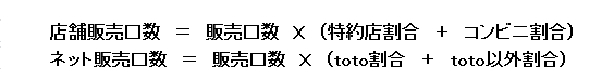 現時点では特約店販売口数とコンビニ販売口数を店舗販売口数、totoオフィシャル販売口数とtotoオフィシャル以外の販売口数