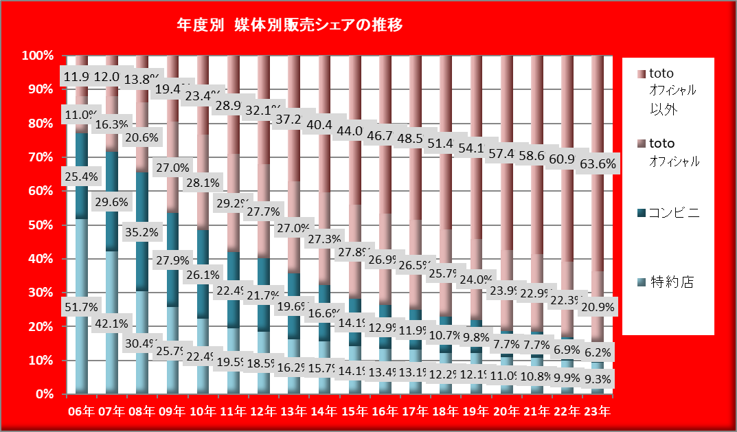 開催毎の総販売口数は公表されているが、開催毎の媒体別の販売口数は公表されていないので